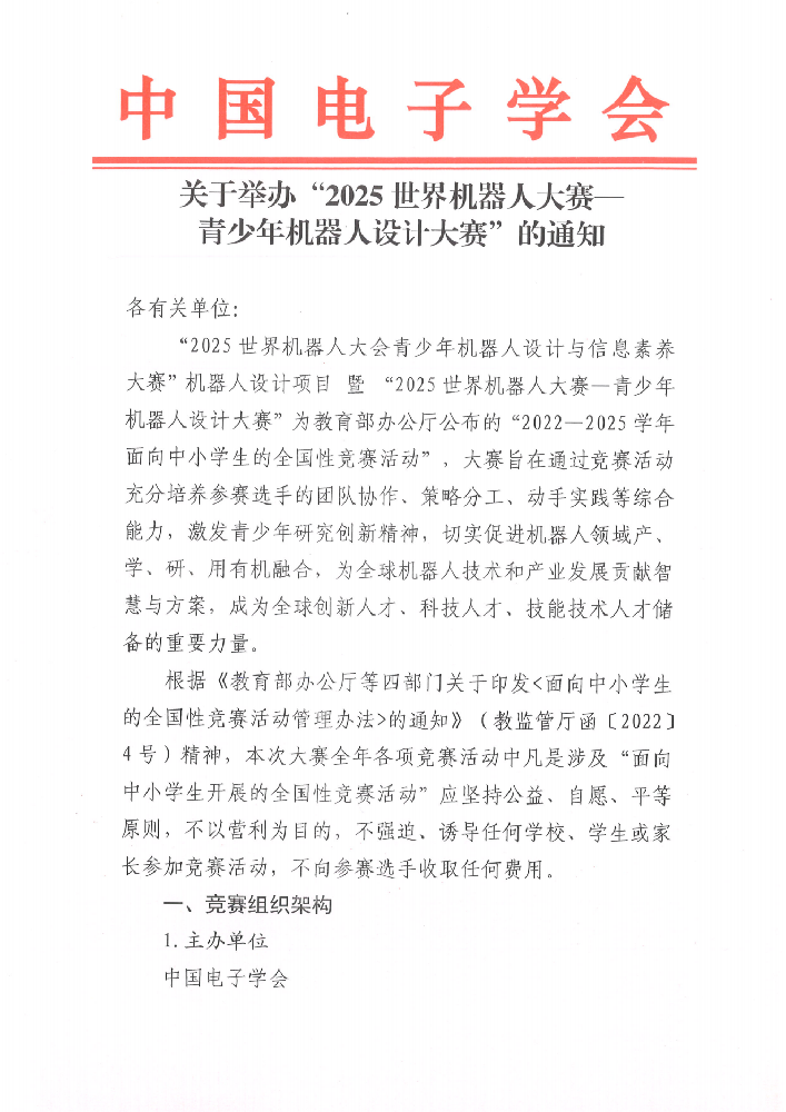 關于舉辦“2025世界機器人大賽—青少年機器人設計大賽”的通知