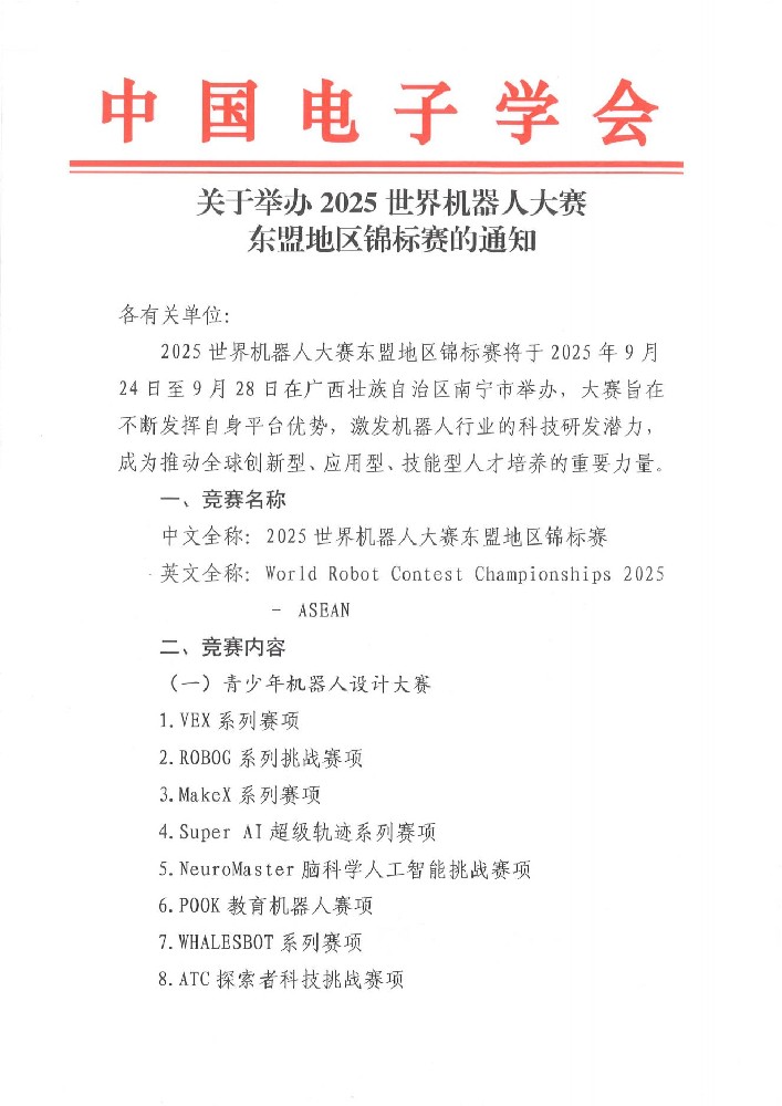 關于舉辦2025世界機器人大賽東盟地區錦標賽的通知