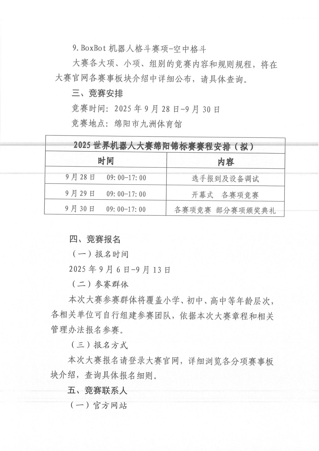 關(guān)于舉辦2025世界機器人大賽綿陽錦標(biāo)賽的通知