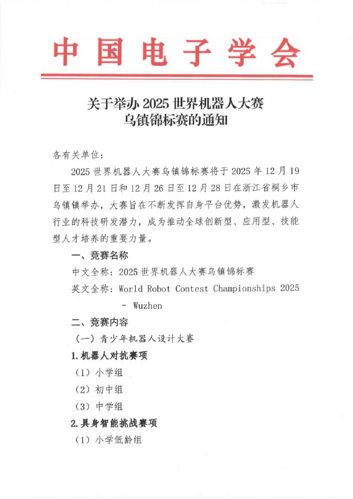 關于舉辦2025世界機器人大賽烏鎮錦標賽的通知