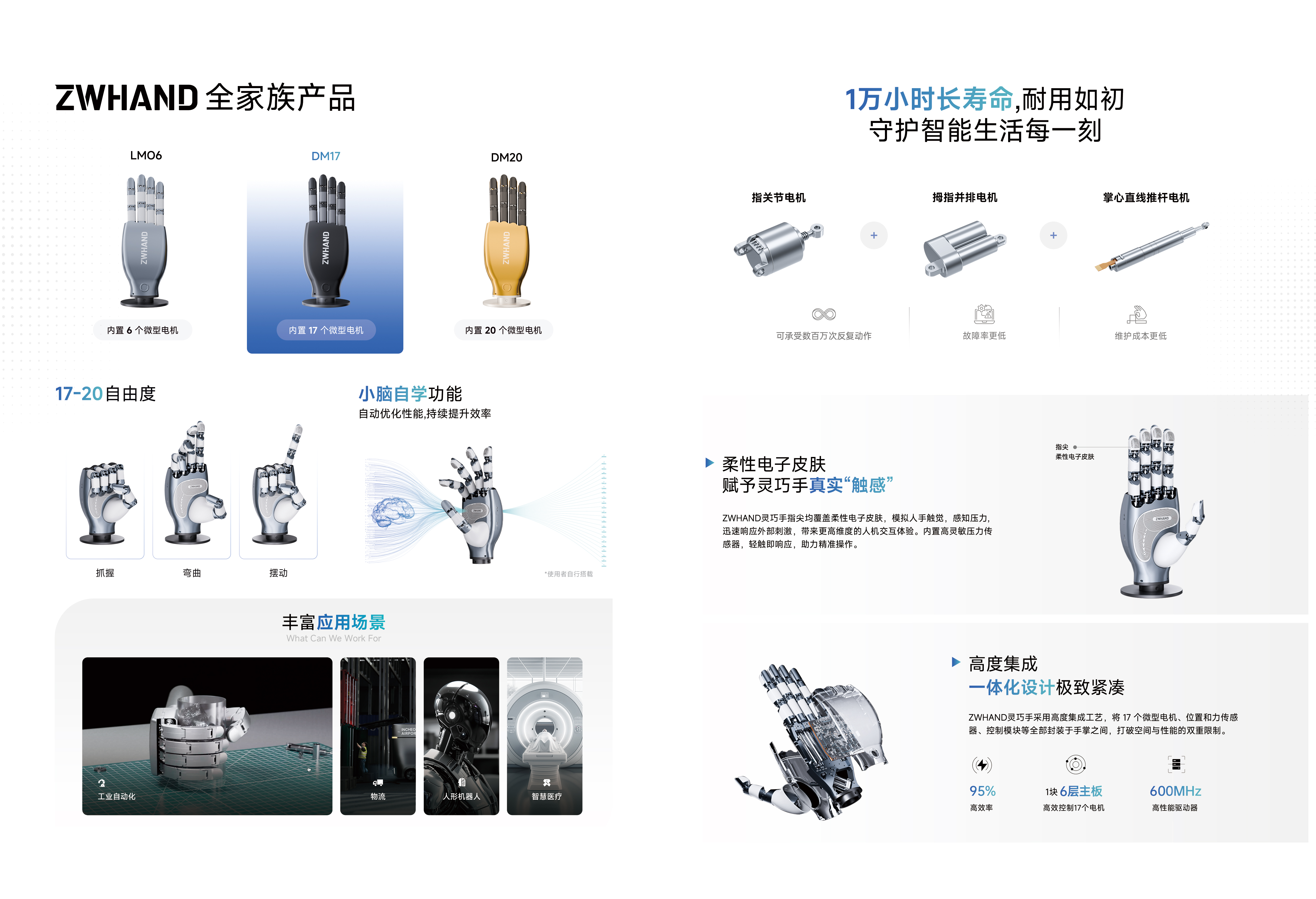 2024年11月,兆威全球首發(fā)ZWHAND靈巧手,采用自主創(chuàng)新的指關(guān)節(jié)獨(dú)立驅(qū)動(dòng)技術(shù),高度集成工藝,將17個(gè)微型電機(jī)、位置和力傳感器、控制模塊等全部封裝于手掌之間,打破空間與性能的雙重限制。