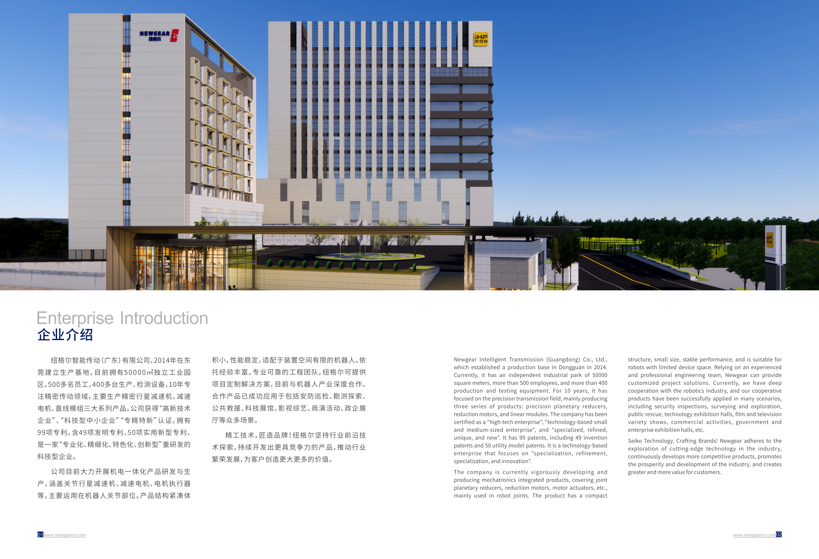 紐格爾智能傳動(廣東)有限公司,2014年在東莞建立生產基地,目前擁有50000㎡獨立工業園區,500多名員工,400多臺生產、檢測設備,10年專注精密傳動領域,主要生產精密行星減速機、減速電機、直線模組三大系列產品。公司獲得“高新技術企業”、“科技型中小企業”“專精特新”認證,擁有99項專利,含49項發明專利、50項實用新型專利,是一家“專業化、精細化、特色化、創新型”重研發的科技型企業。 公司目前大力開展機電一體化產品研發與生產,涵蓋關節行星減速機、減速電機、電機執行器等,主要運用在機器人關節部位。產品結構緊湊體積小,性能穩定,適配于裝置空間有限的機器人。