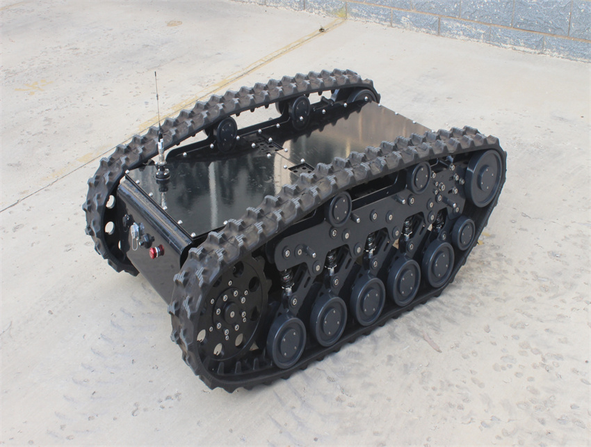 獨特的履帶懸掛防護系統(tǒng),更好的適應(yīng)惡劣路況,避免砂石、灰塵進入潤滑軸承,提高壽命;插齒式驅(qū)動輪結(jié)構(gòu),使得驅(qū)動輪與履帶緊密咬合,避免履帶與驅(qū)動輪的脫落。防護型懸掛系統(tǒng)配合插齒式驅(qū)動輪系大大提升了履帶式行走系統(tǒng)在復(fù)雜惡劣環(huán)境的適應(yīng)性