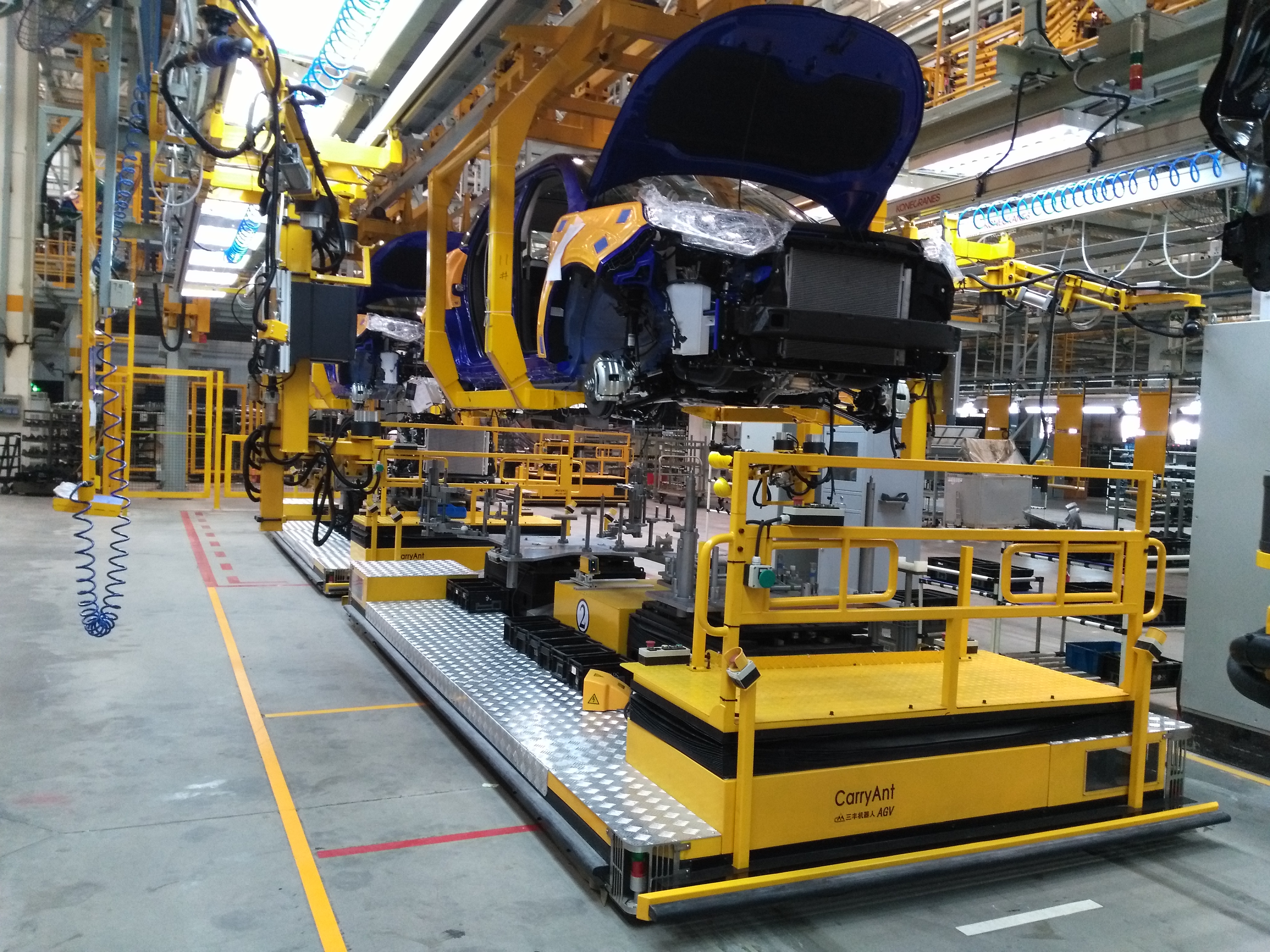 集成視覺識別、自主導航、智能定位、伺服驅動與閉環控制、多重行駛與安全保護、自動裝載、柔性輔助合裝裝配等多項核心技術,有效滿足車企多車型、大規模、快節拍和智能化裝配的需求。