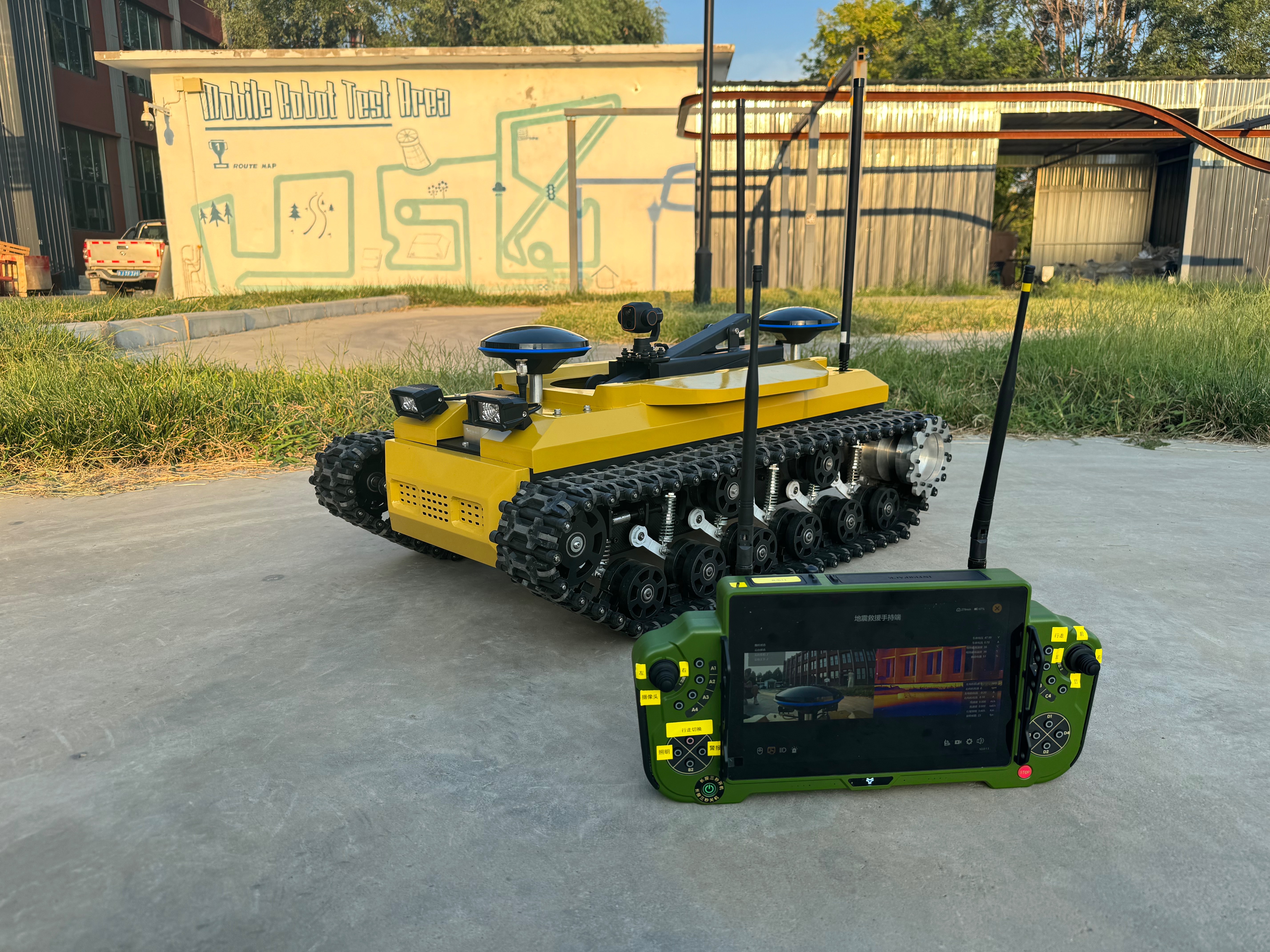 Komodo-ZERO履帶式機器人底盤是一款輕量化,小型高速移動機器人底盤,整車采用特制的低滾阻節式履帶,原地轉向功率小,車身采用全鋁制車架和碳纖維懸掛,搭載空心杯直流伺服電機和行星減速機,直線行使可滿足最大20KM/H速度,自重小于50KG。可滿足小型偵查類機器人越野性能及平穩性能的超高要求,安裝12枚油壓阻尼避震器,配合履帶獨特設計的內外花紋,保持地面抓地力的同時,具有更加平順的通過性能。