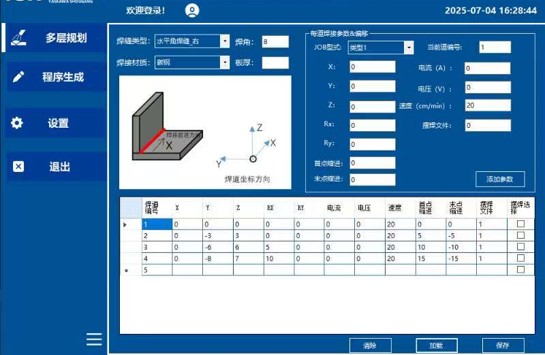 該系統(tǒng)是YSR在中厚板焊接領(lǐng)域的最新研發(fā)成果,可移動協(xié)作機器人焊接系統(tǒng)搭配多層焊坡口自適應(yīng)規(guī)劃軟件,可根據(jù)工件坡口尺寸、材料類型、厚度、接頭形式、質(zhì)量要求等,實現(xiàn)機器人多層多道焊接軌跡程序自動規(guī)劃,并利用焊縫始端檢出程序的自動檢測工件位置偏差,形成整套的大型結(jié)構(gòu)件的焊接解決方案,極大降低現(xiàn)場機器人示教的工作量,提升焊接質(zhì)量和效率。