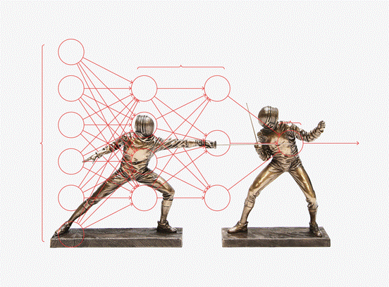 圖1對抗性神經網絡中產生數據與判別數據持續進行