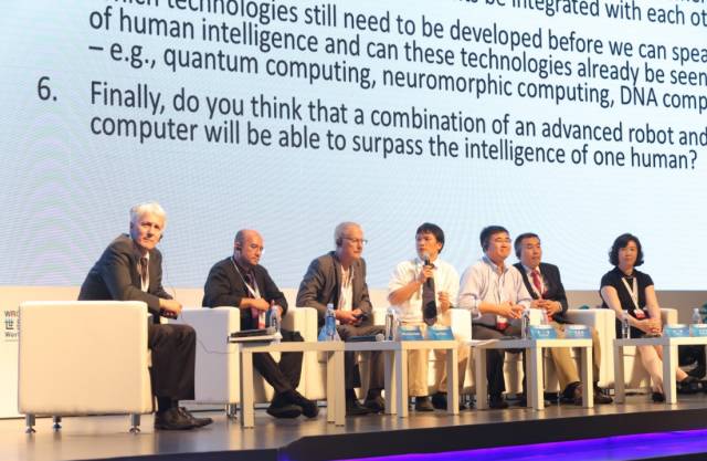 對話期間,各位專家首先就機器人智能意識問題分別發表了觀點。孫富春認為,人類智能當中最關鍵的元素應該是人和外界交互的能力。張丹華則認為語言、邏輯、身體、互動、自我感知和自然的聯系,是人類智能的核心。缺少這些能力的機器人,難以被稱為真正的智能,因此,Alois C.Knoll也談到,六十年代就有了計算機,現在即使計算的能力已經增強并可以實施一些人工智能了,人們也不會說計算機是人工智能。